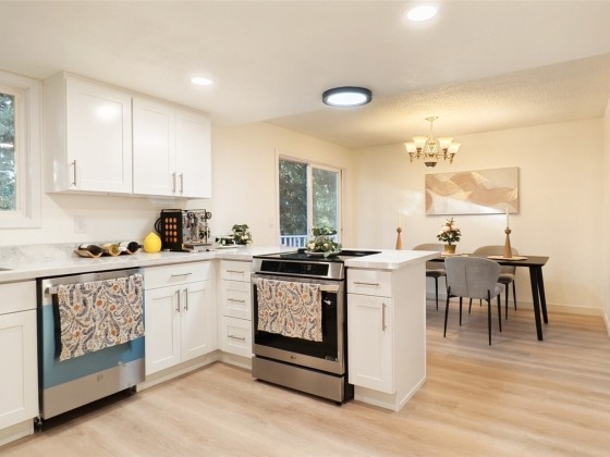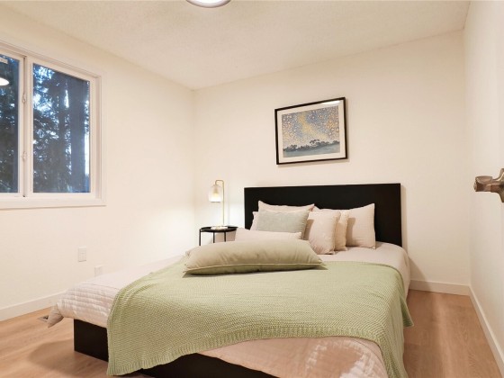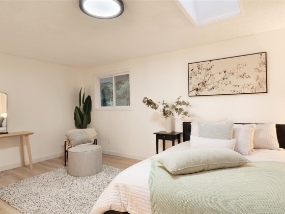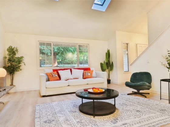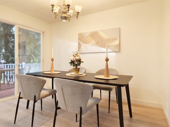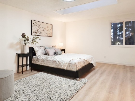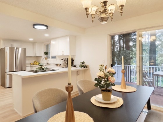 Welcome to your beautifully updated home on oversized lot in serene setting. Enjoy upgraded baths and kitchen with quartz countertops, stainless steel appliances and brand-new cupboards. Love sliding glass doors from dining room onto large deck to relax and entertain. Cozy around wood burning fireplace. High ceilings, new flooring, skylights and tons of windows for maximum sunlight. Excellent location. Don’t miss this one!