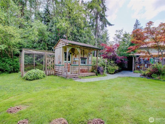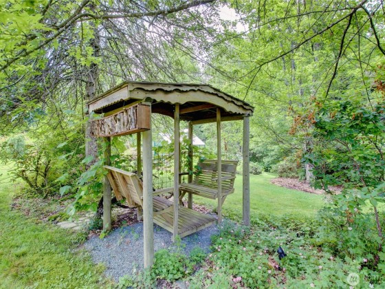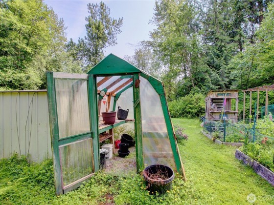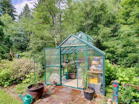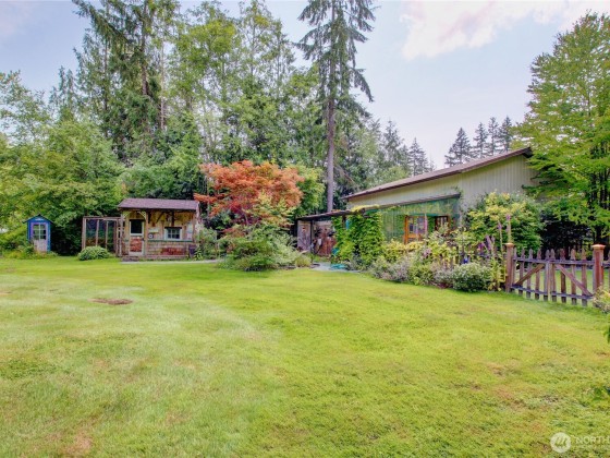The Garden of Eden exists! Gardens, greenhouse, orchard, ponds and rare plants are just a small part of this magnificent home. Located on 6+ tranquil acres at the end of a long gated drive, this home offers a ton of privacy yet close to town. Large 24x30 shop. Home has terrific floor plan that's light and bright w/ vaulted ceilings & skylights. Spacious kitchen has pantry & lots of cabinets and counter space. Main bedroom w/ ensuite & walk in closet is on opposite end of additional 2 bedrooms and guest bath. Family room has a pellet burning stove and slider leading to a covered deck. Living area has vaulted ceilings and large windows. A great mix of trees, grass, foliage, a chicken coop and open space. Plenty of room for animals. Amazing!
