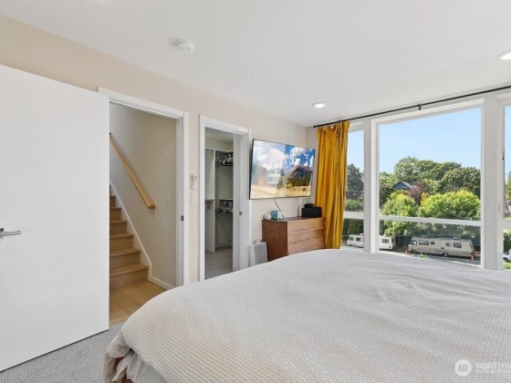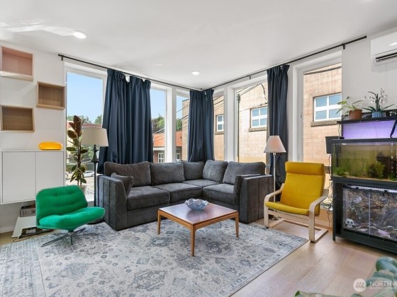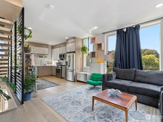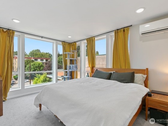 Built in 2022, this stunning end-unit, 3 bed/2 bath townhome has a reserved parking space, steps from the door. It's filled with natural light from the floor-to-ceiling windows, equipped with A/C for those warm days. The first level offers 2 bedrooms, a full bath and a washer and dryer. The main level’s open concept design has modern finishes, stainless steel appliances, gas range, and dining space. The primary suite features a walk-through closet to a ¾ en-suite, walk-in shower and dual vanities. Take in sweeping city and territorial views from your private rooftop deck. With no rental restrictions and a prime Leschi location near I-90, transit, and amenities, this home offers style and versatility. Seller procured inspection available.
