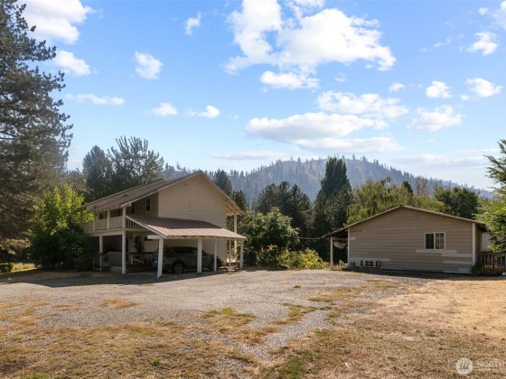 Step onto a property that’s as full of charm as it is potential! Here you’ll find a storybook farmhouse, a cozy mobile home, and a massive pole shop complete with its own office area and a dedicated space perfect for your dream coffee shop or small business. An on-site office makes working from home a breeze, and there’s still extra buildable land waiting for the vision of your dream home. All of this is framed by sweeping mountain views and the soothing sounds of a creek flowing next to the property. Properties like this don’t come along often—come experience it for yourself! Buyers need to do own due diligence for commercial use.