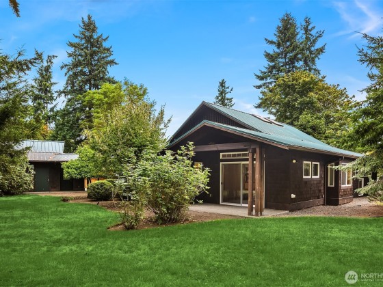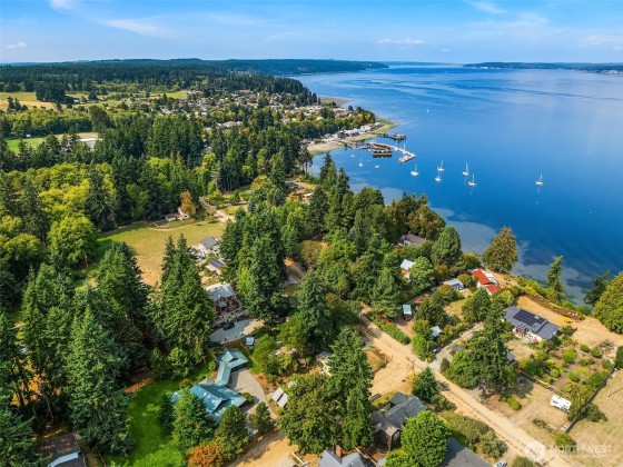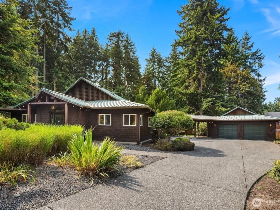 Timeless NW Craftsman by Asplund & Epstein, this retreat embodies Whidbey Island living with natural beauty & modern flavor. Wood shingles, timber posts & earthy tones ground the architecture in its forested setting. Minutes to downtown Langley & your fave coffee shop. Inside, the circular flow is designed for connection & comfort. Skylights & expansive windows fill the home with natural light. The kitchen offers double sinks, pantry & appliance garage. The primary suite has sliding doors to greenery, marble-clad bath with soaking tub & walk-in closet. 2 bedrooms provide stylish spaces. A large laundry, mudroom, storage & solar panels enhance daily life. Expansive yard, wide driveway & detached 2-car garage with covered walkway offer ease.