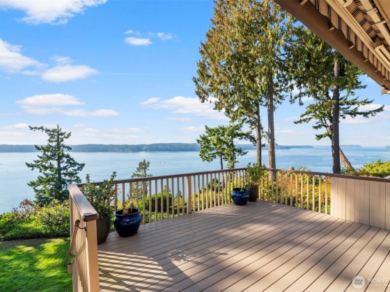 Absolutely incredible 180 degree unobstructed western views of Puget Sound. The Faraway is a 5 owner complex on 5 acres in a quiet, private setting. Not only enjoy gorgeous sunsets from your living space & generous deck, but from your bathtub too! Cozy gas fireplaces in both the dining and living rooms, Subzero refrigerator, new Kitchen Aid double wall ovens, granite countertops, hardwood floors, new entry chandelier, new AC and retractable deck sunshade. Primary features ample closet space, heated bathroom floors & jetted tub with a view. Built-in Murphy bed & built- in cabinets & desk in 2nd bedroom/office space. Large detached garage with shop area & pull down ladder to upper storage. Close to freeways & shopping!