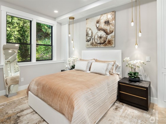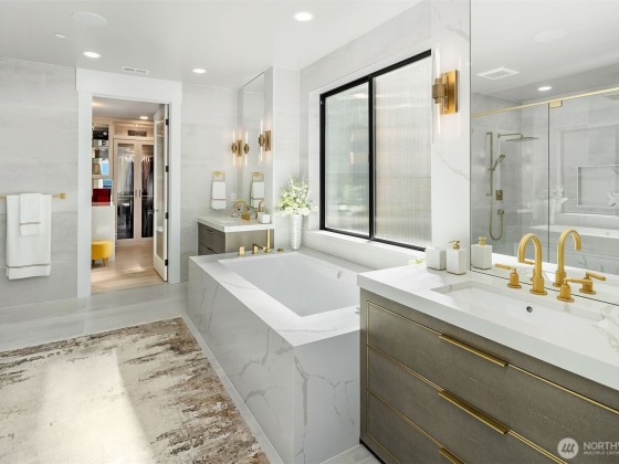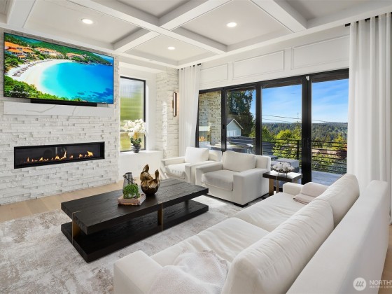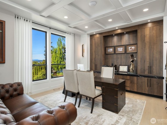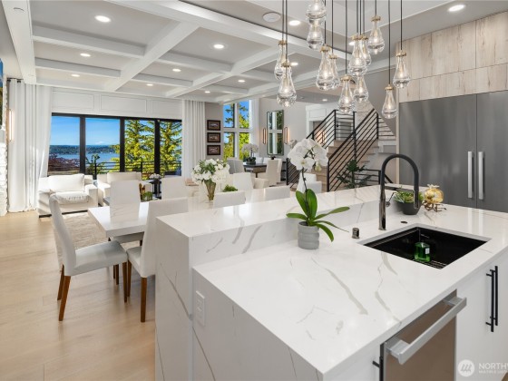Situated atop quiet hillside overlooking Lake Sammamish, this new custom NW Contemporary home by Elite Builders offers awe-inspiring lake & Mountain views from multiple levels. Spanning 5,099 sq ft, this 4 bed/4.5 home boasts the epitome of luxury through-out with Restoration Hardware lighting & hardware, Bellmont Cabinets, Miele Appliances, built-in sound system & more. The Chef's kitchen flows into a light-filled great room perfect for gatherings. Floor-to-ceiling windows and sliding doors lead to a stylish patio that invites you to unwind with sweeping views. Additional highlights include 2 utility rooms, 2 home offices, and spa-quality fitness room & sauna. Located within a short proximity to downtown Bellevue. This home is a must see!