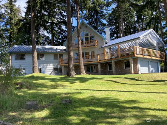 View View View Acreage !! 3 acres quiet and private setting on what feels like the top of the Island, 450 feet altitude. Catch your breath with stunning east and west water views from the Cascades to Olympic Mountains with spectacular sunrise and sunsets, plus shipping lanes, and the night lights of the mainland. Covered Trex deck is perfect for dining al fresco. Not to mention soaking in the indoor mini pool after a hard day of play. A very rare opportunity to own a very rare property. *All furniture virtually staged.