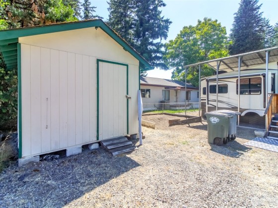Home Sweet Home! This one level, low maintenance charming home shows 42 years pride of ownership. Fir Meadows, close to amenities, park like settings, large lots, & community playground. Fully fenced level lot, carport parking, one car garage, covered front porch, covered back porch, wood decking, & plenty of space for RV parking or a large garden. The 2021 40 foot Van Leigh Pinecrest Fifth Wheel does not convey but offered for sale! Seller installed newer drywall finishes, oak cabinets, and laminate flooring throughout. Large bedrooms, utility room, & expansive living room. Ample storage! Home offers 960 finished square feet of living space, 8,470 square foot lot, & landscaping that adds beautiful privacy. Newer Kerosene stove for heat.