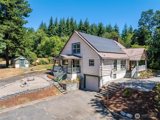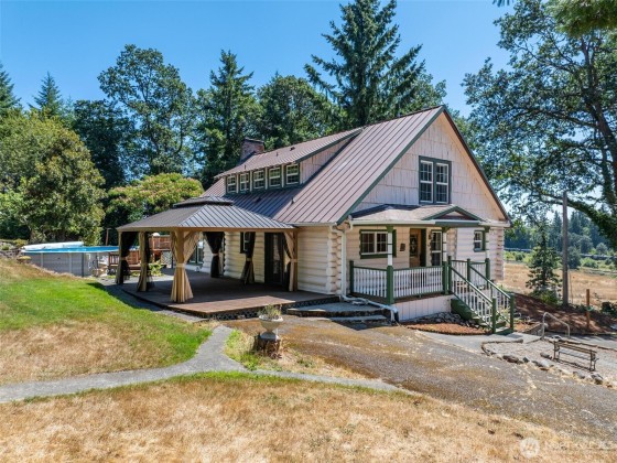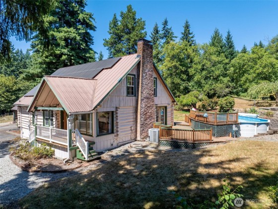 Charming log home on nearly 6 acres at the edge of Centralia—enjoy privacy with in-town convenience. Features include a 60x30 shop with RV cover, detached garage, machine shed, fenced garden, greenhouse, fruit trees, and paved driveway. The home blends classic log style with modern updates like an updated kitchen, flooring, PLUS -SOLAR Powered SAVINGS!!! Cozy fireplaces in both the living room and primary bedroom. Enjoy an above-ground pool with custom deck and solar heat system. Ample parking for guests. ZONED R:15-City says potential for 89 Residential Units, Triplexes on 6K lots and 4-plexes on 10k lots. Live here with future development potential? Don't miss this unique and versatile property-Check all with city planning/public works!