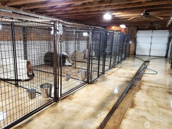 TWENTY-acre property situated between Portland and Seattle 12 miles from I-5. This turnkey kennel business includes a 3-bed, 3-bath home with two primary suites, one w/handicapped bathroom, a cozy living room with fireplace, lg utility room w/ double washer/dryers, H2O filtration system. 30' x 40' kennel building w/ a sloped concrete floor, integrated gutter & septic system, 21 free-standing kennels, fenced airing yards. Converted two-car garage serves as a dedicated litter & grooming area, while a separate one-car garage & large barn offer additional space. 3 rail fencing. A gazebo provides a perfect vantage point to oversee the acreage and serene surroundings. Don’t miss this ideal opportunity for a dog-related business or hobby farm or ?