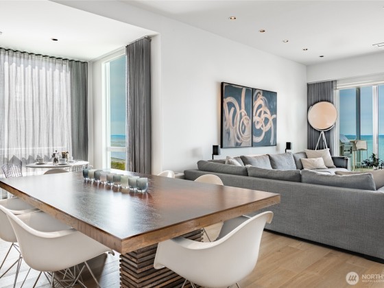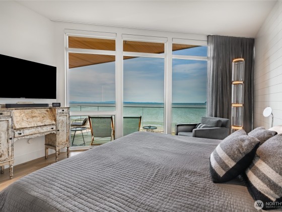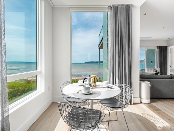 Elegant coastal sanctuary in Semiahmoo! Exquisite beach living with a perfect blend of luxury & comfort. Panoramic views of Strait of Georgia, Gulf Islands & more! One-of-a-kind custom unit featuring 2 bedrooms & 2.25 baths, plus den/flex room. Crafted for those who appreciate the finer things in life. East deck facing Mt. Baker/Sunrise. West facing sunsets/beach & city lights of White Rock B.C. Culinary kitchen:13' quartz island, Jenn-Air, Thermador wine fridge, 2 D/W, 2 Ovens, huge Butler's pantry. Open living extends to covered deck. Primary wing w/spa bath, heated floors, (all) intelligent toilets, designer closet to laundry! Garage w/2 spots, EV & storage. Less than 2 hr. from Seattle & 15 min. to Canadian Border! Tranquility Found!