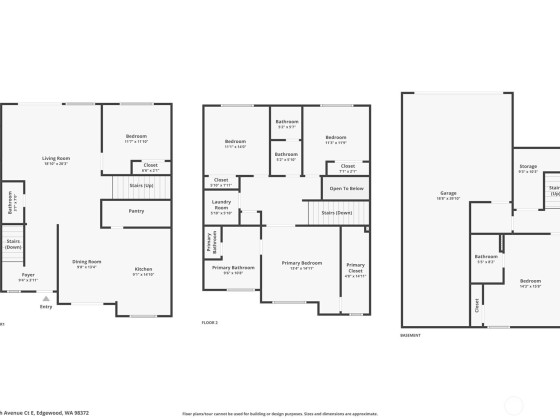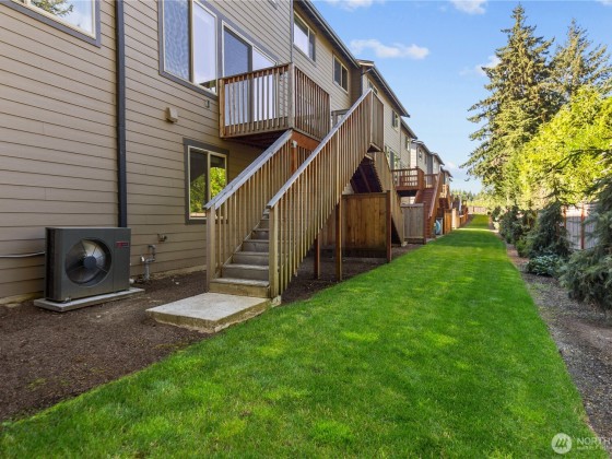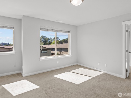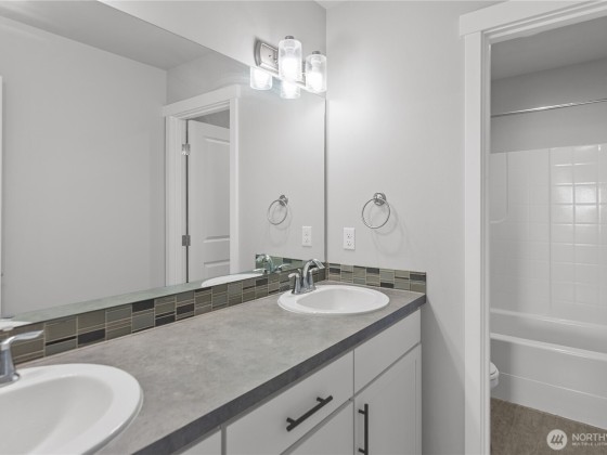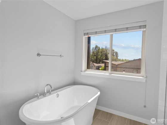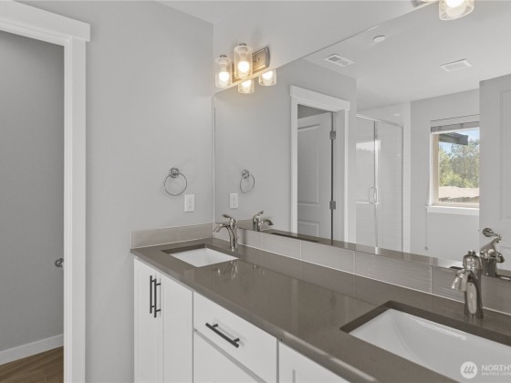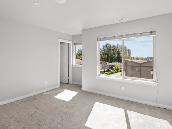 Spacious 5-bedroom, 3.25-bath, 3-level home with designer contemporary finishes and carefree living. Main level has an open living room with fireplace, dining area, and large kitchen. Upstairs, the oversized primary suite features double doors, a huge walk-in closet, and a spa-like bath with MAAX soaking tub and designer tile. Laundry is conveniently upstairs. Lower level offers a flexible bedroom (or office/playroom) with attached bath, next to the 3-car garage. Comfort year-round with efficient systems: Trane central A/C, 95% heating, tankless water heater, and sprinkler system. Two decks for outdoor living. Community dog park and play structure. Ideally located between Seattle and Tacoma for easy commuting.