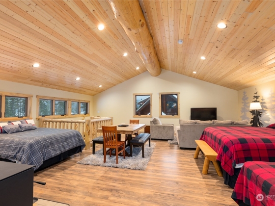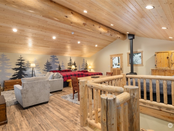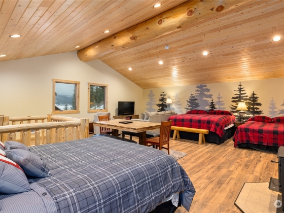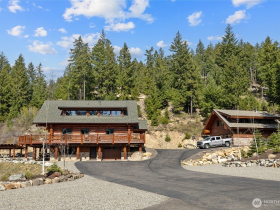 Perched above Lake Cle Elum, this turn key, meticulously maintained, custom built log home on 3 acres is a must see. Main floor offers eat-in kitchen, great room with rock fireplace, vaulted ceilings, and massive windows that overlook the lake and towards the mountains, as well as a guest room and 3/4 bath. Upper level primary bedroom with attached full bath, guest bedroom, powder room, and open loft w/deck access. Lower level boasts rec room, hot tub access and attached heated garage. Spacious deck, landscaped yard and firepit with covered space provides the perfect spot for entertaining or just relaxing and taking in the views. Additional detached garage with additional living space. Enjoy 4 seasons of fun in this recreational paradise!