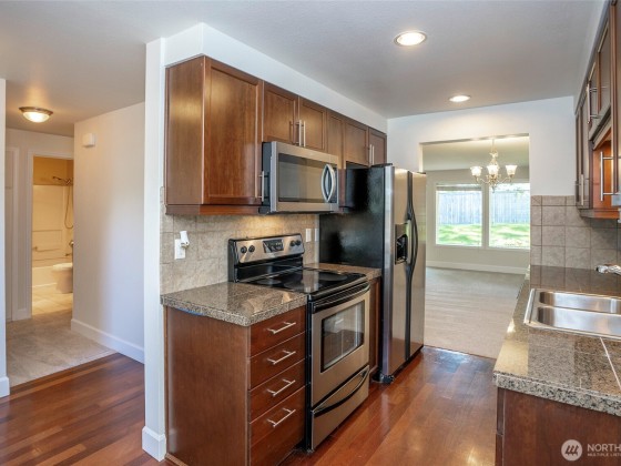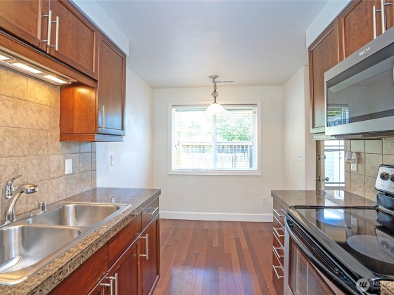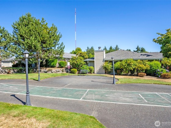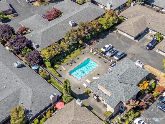 Spic-and-span one level condo in gated Village at the Pointe in North Tacoma. Quiet development, just off Pearl St, minutes to Point Defiance Park, Point Ruston and the Proctor District. Refreshed interior includes fresh interior paint and new carpet throughout. Brazilian hardwoods span the entry way and kitchen, nicely appointed with SS appliances, granite tile counters and a cheery breakfast nook. Sunny living room with NG fireplace and slider doors to a backyard patio and shared common lawn area. 2 nice sized bedrooms - one on suite. 2 dedicated parking spaces - private garage & an uncovered spot. Gated community with clubhouse and community pool! Easy clean condo, no stairs. Come see!