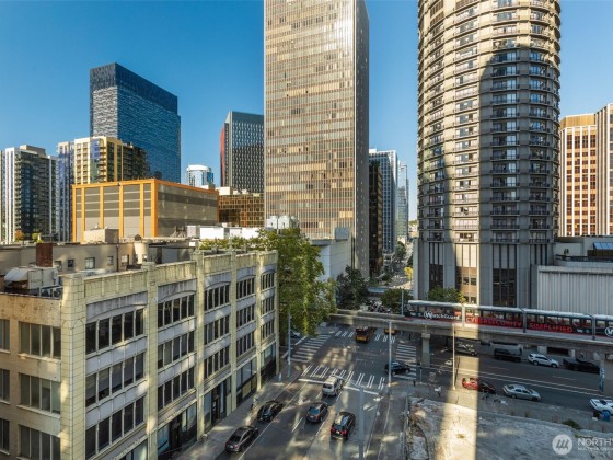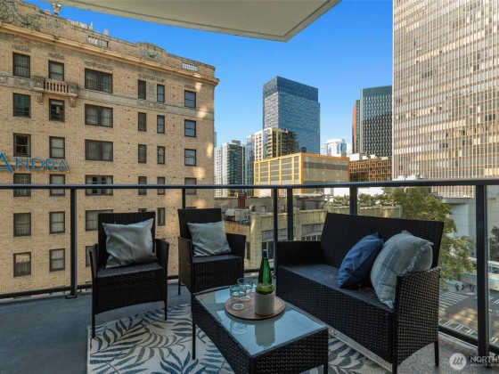 Live a luxury lifestyle at Escala. First class amenities wrapped up in a gorgeous package right in the heart of downtown Seattle. Light and bright with NW facing window walls and a dual access covered deck overlooking the city. Spacious open living layout with room to work, play and entertain. Contemporary kitchen with Pedini cabinets, granite slab counters, gas cooktop and space to add an island or table to further enjoy your culinary creations. Oversized bedroom with ensuite 5-piece bath creates the perfect retreat with direct access to the large corner deck for fresh air enjoyment. Convenient half bath, desk nook, hardwood floors and A/C are the cherry on top. Garage parking with EV charger and additional storage included.