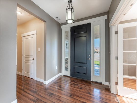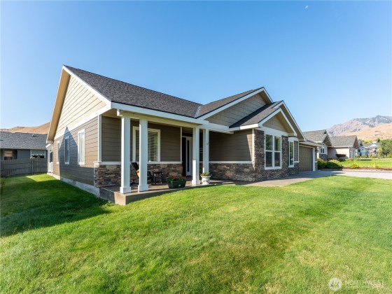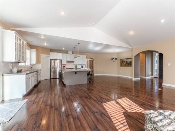 This beautiful 3+ bedroom 2 bath home offers approximately 2400 sq. ft. of 1 level living; there are no steps throughout this home, this includes from the garage into the home. This home offers French doors leading into your office with custom built in cabinets. Entertain your friends in your large great room with vaulted ceilings throughout, all connected to a beautiful spacious kitchen with an amazing extra-large center bar for entertaining. (There are acid washed floors under LVP) in great room. New appliances in the kitchen, Range Oven, Dishwasher, Refrigerator. Beautiful landscaping, partially fenced yard with irrigation water and full sprinkler system installed. Large shed alongside the garage with additional RV parking available.