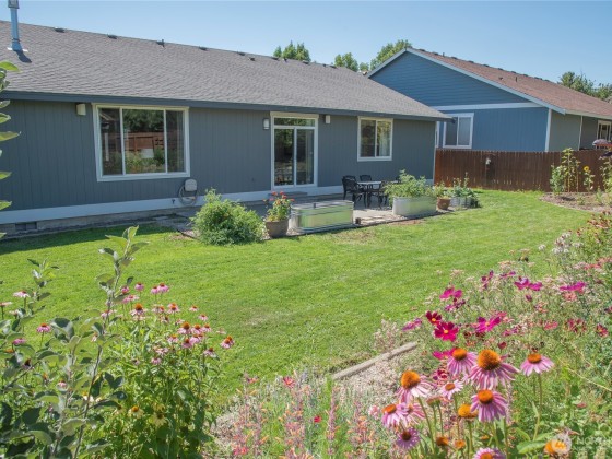 Settled in a cul-de-sac on the out skirts of town sets this immaculate 2355 sq ft home with plenty of charm. Picture perfect porch, bright turquoise door and beautiful flowers. Upon entering you will find a well designed floor plan. The 3 bedroom home also has an office and a formal dining area for entertaining. The Great room is situated in the center of the house with vaulted ceilings, tile fireplace and built in shelving. The beautiful kitchen has granite counters The primary suite has 2 walk in closets, jetted tub and shower. Sliding door in the living area opens up to a backyard oasis. Enjoy sitting out on the patio overlooking the amazing flower garden. This home is ready for you to enjoy!