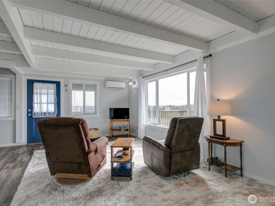 Wake up to breathtaking, unobstructed water views in this stunning home perfectly positioned across from the rock jetty! The open-concept main living area is bathed in natural light with front-facing windows showcasing the serene views. Recently renovated, the home features new vinyl plank flooring throughout, an updated kitchen with quartz countertops, stainless steel appliances & ample storage. Upstairs, two spacious bedrooms boast impressive wood-vaulted ceilings with access to the upper deck, offering even more spectacular views. Enjoy outdoor living on the expansive front deck or retreat to the partially enclosed side porch—perfect for enjoying stormy days. Don’t miss this rare second chance to own this beautifully updated home!