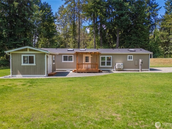 Don't miss the opportunity to own this sun soaked rambler with fresh whole property remodel nestled on 5 acres near Lake Joy. Home has had a stunning remodel and is perfectly laid out with sprawling open concept kitchen complimenting massive dining and living areas that flow to primary suite on one end and other bedrooms and utility room on the other. Fully stocked with brand new appliances, energy efficient mini-splits and wall heaters. Lot boasts both loads of open sky around the home and full forest that seems to go on forever down toward the lake. Fully finished hobby or ? room is just one of the multiple useful out buildings. Don't miss the separate power meter and water connection as you pull in, possibly ADU? Buyer to verify.