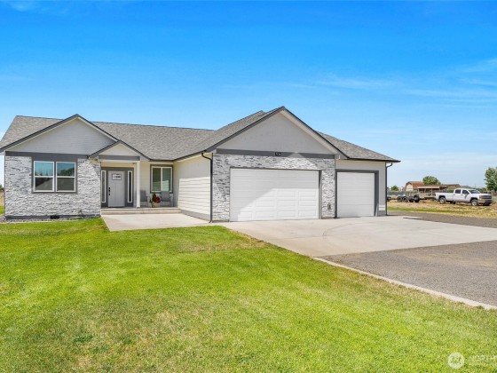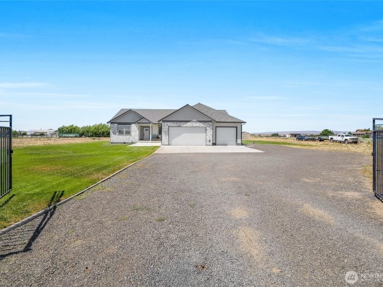 Peaceful country living on 5 acres! This beautiful 3 bedroom, 3 bath home with a den/office and a spacious 3 car garage. The open floor concept offers a welcoming, airy feel, with a spacious modern kitchen, perfect for entertaining. The primary bedroom offers a large bathroom with a walk-in closet. Enjoy wide open acreage with endless possibilities for future use. You don't want to miss this one!