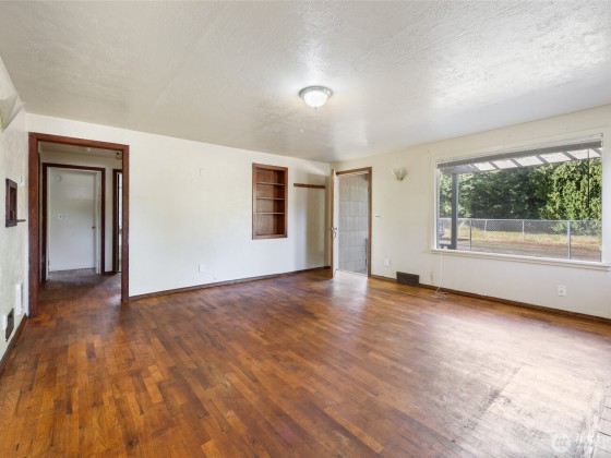 Charming home with newer roof in Olympia. Two bedrooms, a full bathroom, plus huge 640 square foot unfinished basement that has potential galore! Plenty of room to add extra bedrooms or a shop in basement. Home has hardwood floors throughout. Spacious lot with space for RV parking and plenty of room for a garden. Lot is 80 feet wide by 110 feet deep. Close to parks, trails, shopping & I-5. Olympia Schools.