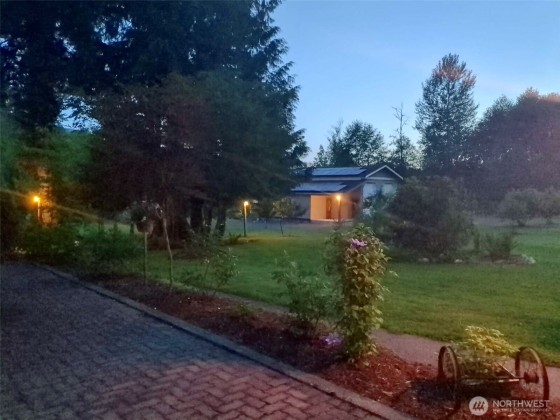 FOOTHILLS LIVING AT IT'S BEST! Beautiful and serene property! Experience the best of country living on 2.58 acres with a 2,510 sq ft home, new 200 sq ft studio cabin, 4-bay shop, orchard, garden, and fishing pond. A large solar system (14.8 MWh in 2024) powers year-round energy savings. Home features main floor master suite, vaulted living room, 4 beds, 3 baths, loft bonus room, wood stove, updates throughout, new roof, and brick patio. The shop includes insulated rooms, chimney for stove, 240V power, and new livestock stable roof. Enjoy RV hookups, 8 cords of firewood, peaceful lamppost lighting, no Arctic winds or flooding, and easy access on SR 547. Please note this property is not anywhere near the flood zone.