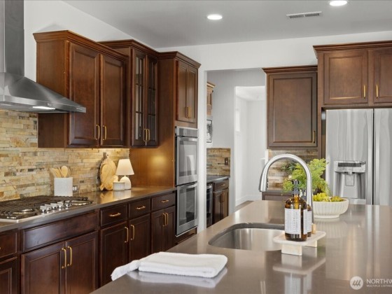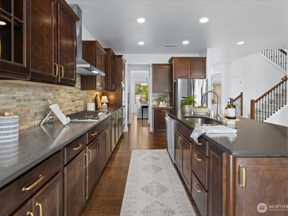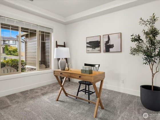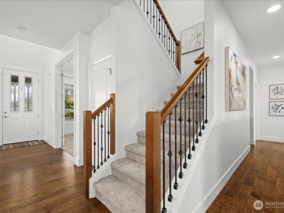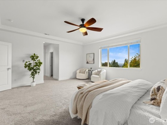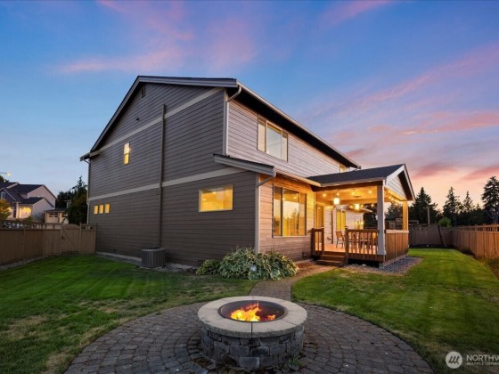 Welcome to The Highlands in Puyallup—a home that blends comfort, space, and community. Thoughtfully maintained with fresh paint, new carpet, and custom touches, this residence features soaring ceilings, hardwood floors, and a spacious kitchen with quartz countertops, double ovens, gas cooktop, and a butler’s pantry. The inviting living room, formal dining, private office, and main-floor suite offer flexible living. Upstairs, the primary retreat boasts dual walk-in closets, bath, and sweeping sunset views, plus two bedrooms, bonus room, and laundry. The oversized garage includes a heated/cooled home gym. Enjoy a cul-de-sac setting with sidewalks, a park, and unbeatable proximity to South Hill, Downtown Puyallup, Sumner, and Edgewood.