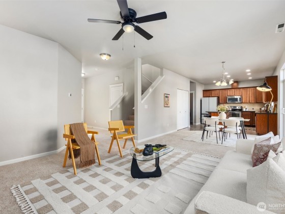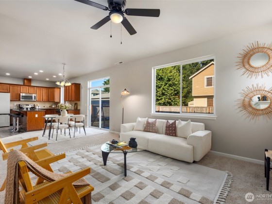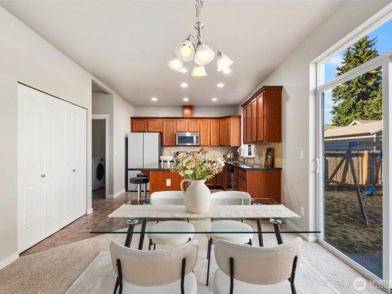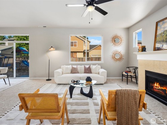 Welcome home to this turn-key gem in a desirable Graham community—ideal for commuters and just minutes to South Hill amenities! Fresh interior paint (including doors and trim) and brand-new carpet throughout make it feel like new construction. Light and bright with oversized windows, this spacious layout features 4 bedrooms, 2.5 baths, and a flexible bonus space perfect for an office, playroom, or guest area. The kitchen offers solid surface counters, stainless appliances, and bar seating. Generously sized secondary bedrooms, a 5-piece primary suite with walk-in closet, attached 2-car garage, and a fully fenced, low-maintenance backyard complete the package.
