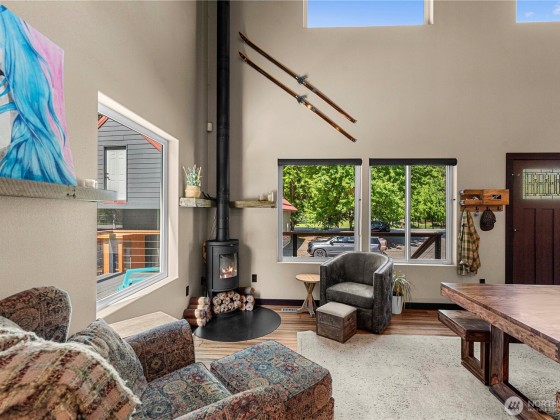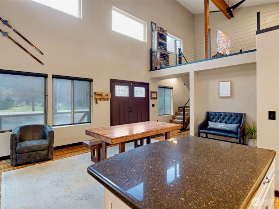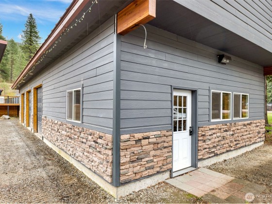 Experience Contemporary Luxury in this 3-level home on a half-acre off east Leavenworth Road with new trex decking. French doors greet you into an inviting main floor offering a custom kitchen, primary bedroom & bath & a living/dining room with wood stove. An additional 1/2 bath & laundry/mud room are on the main floor. Th lower-level features radiant heat, a spacious family room, & a second primary suite. Rich tile, granite, wood, & metal accents adorn the home. An open loft & media space give versatility for office/exercise or guests. Outside, indulge in the large hot tub. A large 3 bay garage includes an 800' ADU. Minutes from town but a country feel on a half acre off east Leavenworth Road just across the road from the river.