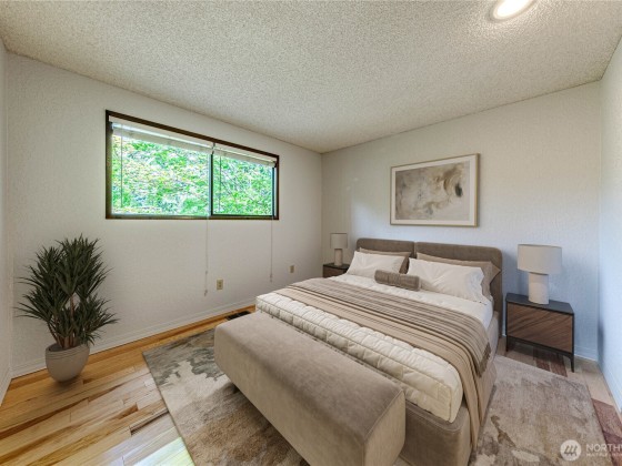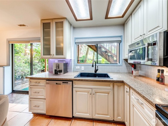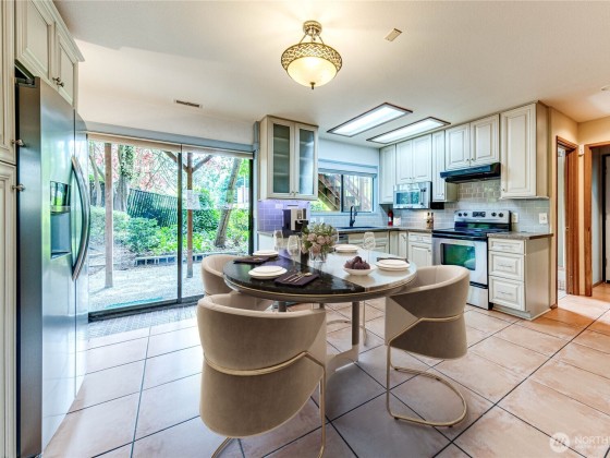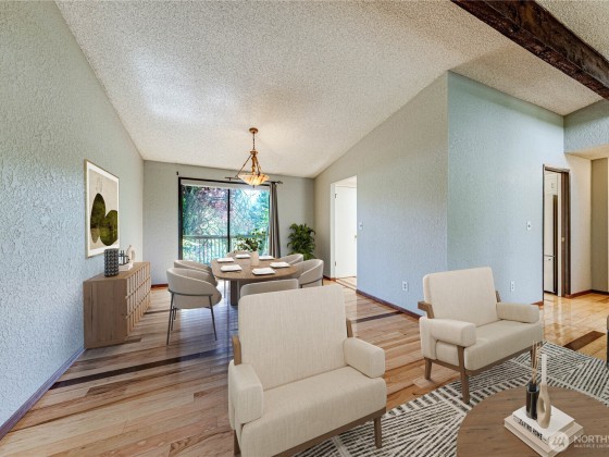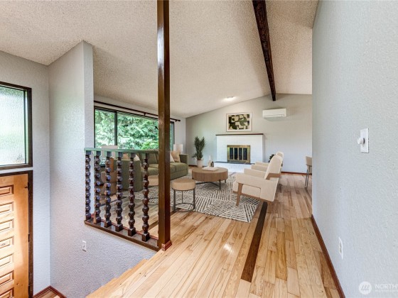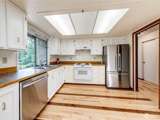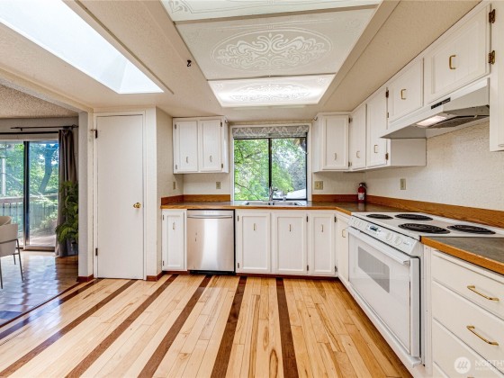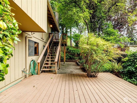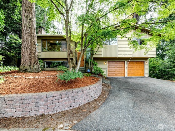 Peaceful cul-de-sac location in the heart of Lynnwood, this meticulously cared-for, much-loved home feels like a retreat in a park like setting. Bright, open and airy home features vaulted ceilings with several skylights, beautiful wide-plank hickory hardwood floors, and cozy wood burning fireplaces. Seller in process of updating quartz kitchen counter tops, primary bathroom floor and vanity, and is offering $1000 for kitchen oven upgrade. 4 bedrooms, including a primary with en-suite are all together on the main level. Lower level offers additional daylight suite with 2nd kitchen, great opportunity for multi-generational or multi-family living. Enjoy outdoor living on the walking trails, upper balcony or the lower level deck and patio.