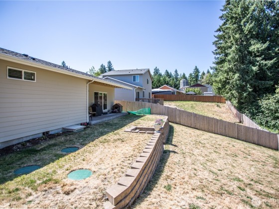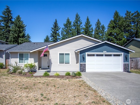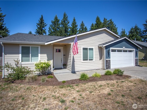 Small Town Living at it's Best, Trotter Downs Neighborhood in Rainier, Almost New Rambler 1691 sqft home on .34 ac. Spacious open floor plan, 3 bedrooms, 9ft ceilings, Gourmet Kitchen, light and bright with quartz counter tops and lots of cabinets, beautiful island, farm style sink, SS appliances with gas range. Main bedrm with luxurious en suite, soaking tub, double sink vanities in both bathrooms, mini splits in each rm. lg utility rm washer/dryer incl. 2 car garage, tankless hot water heater, 3 panel glass slider with custom pull down blinds leads to a private back patio, terraced, fenced back yard to enjoy bbq's and sunsets, quiet neighborhood with sidewalks. 22 mi from JBLM, 20 minutes to Oly. See it today!
