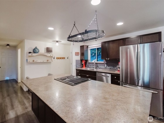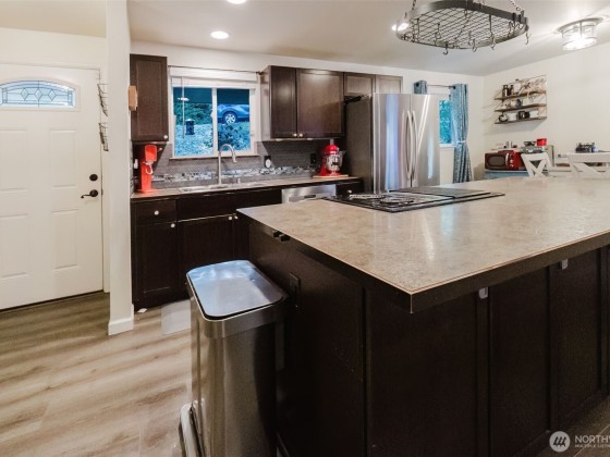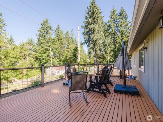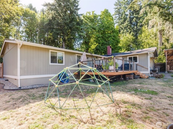 Craving space, charm, & location that fits your whole life? Just minutes from Keyport, Bangor Base, Silverdale, & Poulsbo, this sweet single-level home sits on nearly ½ acre—ready for gardens, play, chickens, or peaceful evenings under the stars. Inside you’ll find 3 beds, 2 baths, wide-plank laminate floors, a cozy wood-burning insert, & a mini split for year-round comfort. The kitchen is made for connection, featuring an oversized island & easy flow into the open living space. The primary suite offers double sinks, a jetted tub, & generous natural light. Step outside through French doors to a brand new custom deck—perfect for morning coffee, sunset dinners, or fireside chats. Single family home, in Poulsbo and under value, wow—don’t wait!