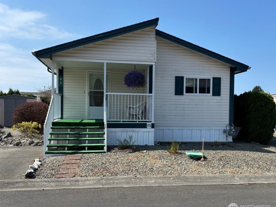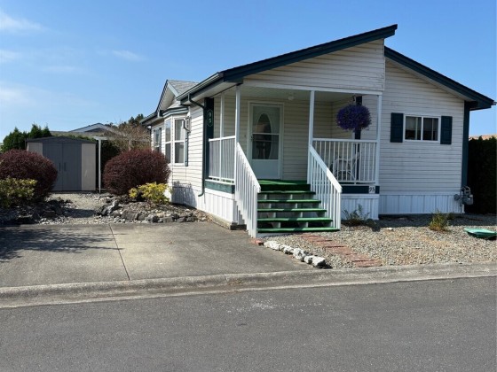 Charming 2-bedroom, 1-bath, 870 sq. ft. home on a year-round occupancy lot. Enjoy a welcoming covered front porch and a well-designed layout featuring a gas freestanding stove and all appliances included, plus $5,000 credit for carpet update! Ideally located just minutes from the bay, with shops, restaurants, and the beach close by. Situated in the sought-after gated community of Latitude 49 Park in Birch Bay, offering a peaceful setting and two dedicated parking spaces. Community amenities include a clubhouse, pool, pickleball courts, exercise room, laundry facilities, and more.