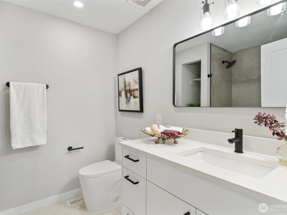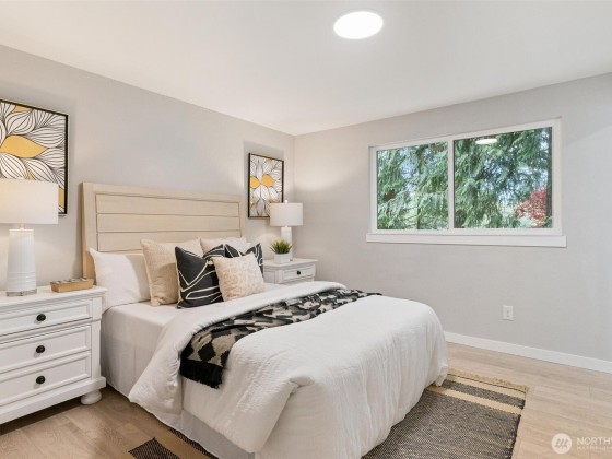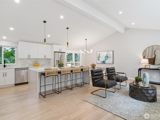 This fully renovated 4-bedroom, 3-bath home boasts a thoughtfully re-designed living space that is ready for a new owner. Bright open-concept floorplan with h/w floors & massive bay window in the living area. The brand-new kitchen features sleek quartz countertops, new cabinetry, & new stainless-steel appliances. All 3 bathrooms have been fully updated w/custom tile throughout, primary bathroom is a spa inspired dream with large shower.Primary bedroom has two closets! The large deck in the backyard is perfect for entertaining! Home features brand new AC, gas generator and tankless water heater! Mins to top-rated Lake WA schools, parks, trails, Lake WA & Totem Lake Mall, this home offers unmatched convenience. Pre-inspection available