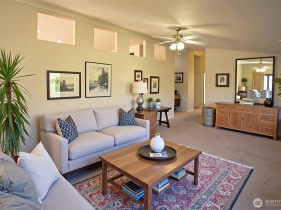 If you have been looking for a well-maintained 3bd/2ba home in Sequim, this one may just be for you! Sitting on a corner lot in a peaceful neighborhood within minutes of downtown - plus quick access to the Olympic Discovery Trail and Carrie Blake Park - this uniquely designed multi-wide Manufactured Home is over 2000 sqft, has a 4 seasons heated patio, private yard, 600 sqft attached 2 car garage with built-in workspace, and is connected to city utilities. With an open concept kitchen, two spacious living areas, plenty of natural light, and a built-in office space, this home is ready for its next owners to come enjoy life in the gorgeous Rainshadow community.
