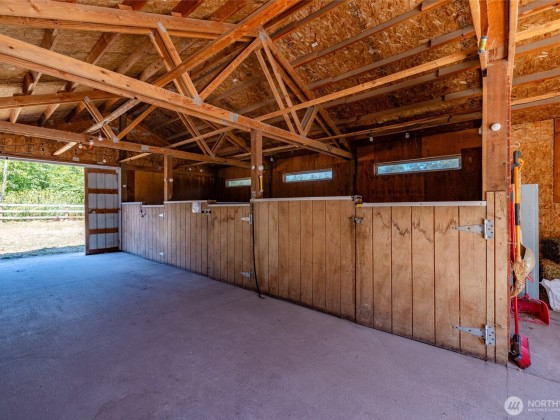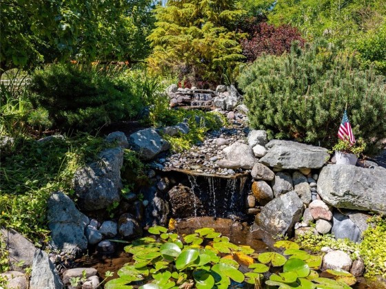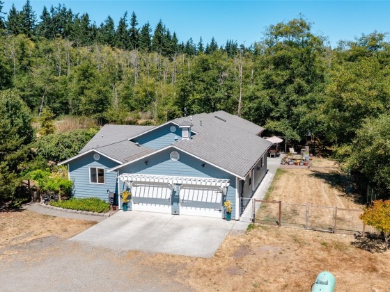 Come escape to this private oasis located on 5.16 tranquil private acres complete with horse barn/stables with attached fenced corral. Bright open floor plan with 2600+ sq ft of living space plus an enclosed atrium, expansive wood deck, lush landscaping, soothing water feature/pond, paver block patio complete with wood arbors & jungle gym play area. Well thought out split bedroom layout perfect for added privacy w/separate office area. Massive primary suite with double walk-in closets, large shower with dual heads & soaker tub for a total of 3 separate baths. Spacious kitchen with stainless appliances & plenty of quality custom cabinets, cozy gas f/p, & all wired for surround sound, generator & 30 amp RV hook up.