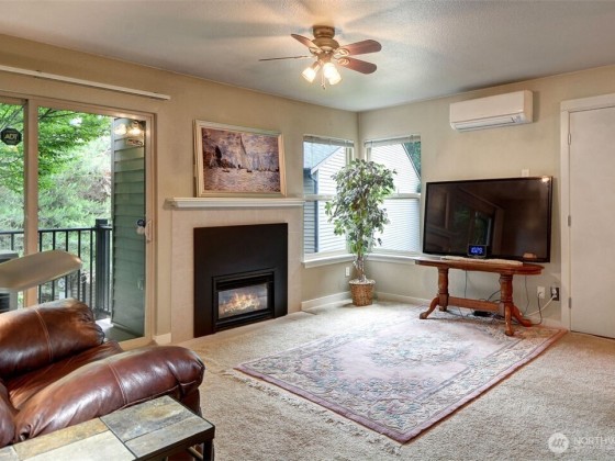 Welcome home to this top floor 2 Bedroom end unit in the heart of Redmond. Open floor plan with lots of natural light, cozy gas fireplace and a ton of storage. Large primary with vanity, new shower installed in main bathroom and an additional bedroom. Energy efficient ductless Mitsubishi mini split uses very little power for heat source and A/C. Private balcony overlooks trees and green space. Oversized laundry room w/built in shelving provides lots of room for storage. Easy access to Redmond Light Rail station, Microsoft campus, parks, shopping/restaurants an in a highly rated School District. Low HOA dues w/outdoor pool, sports court, clubhouse & playground. Close to everything! Investor friendly with No Rental Cap!