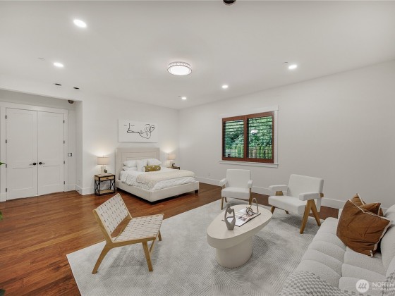 BETTER THAN NEW! Top-rated schools near this meticulous NW Contemporary 5040 sf home with five oversized bedrooms including two primary suites with ensuite baths (one on main level). Dedicated office, 10-ft ceilings, wood shutters, dual gas fireplaces, & custom tile. Full home automation. Gourmet kitchen w/ granite countertops, large island & high-end Subzero & Wolf appliances flows seamlessly into dining area & expansive rec room ideal for year-round grilling & entertaining complete with a pool table, second kitchen with Heston grill and surround sound. 18' pocket door opens to patio & lighted sports court. Professionally landscaped level, lighted yard. Freshly painted, new flooring & turn-key. Seller will assist to buy down your rate!