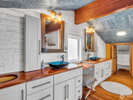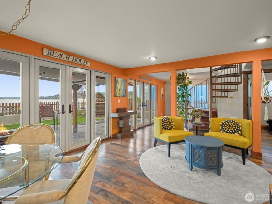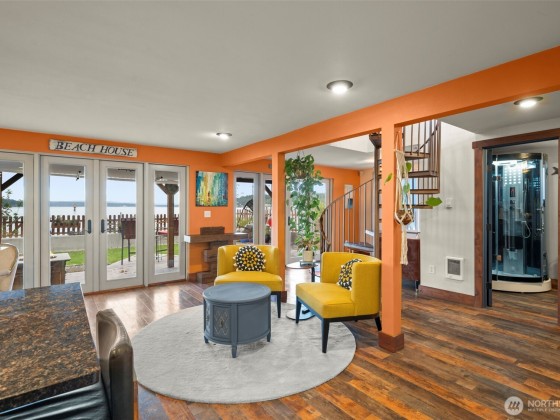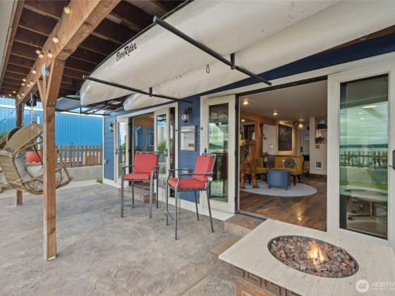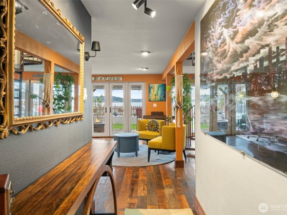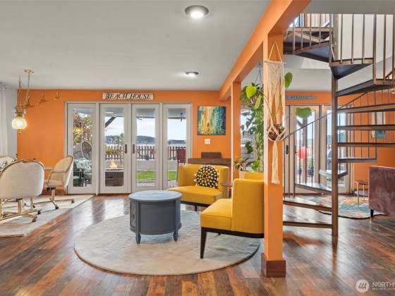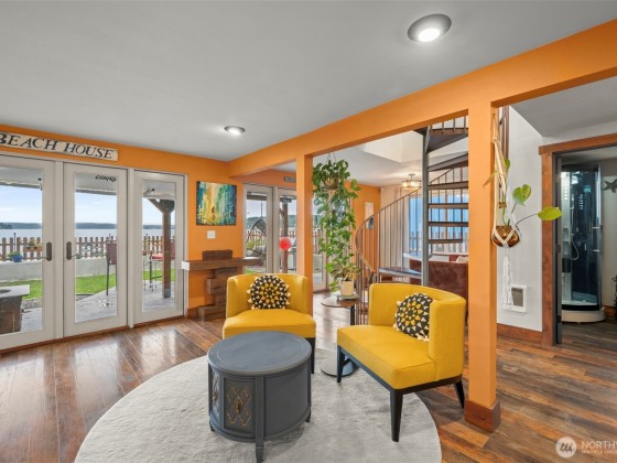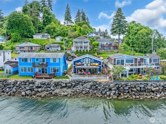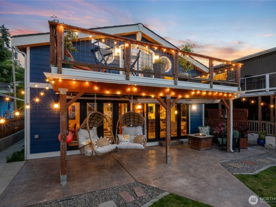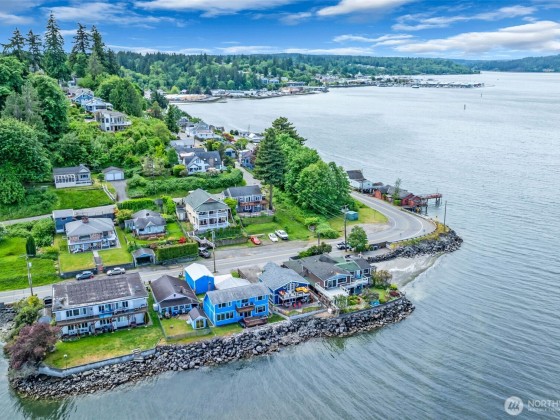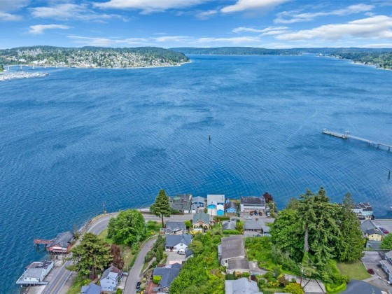 Experience year-round waterfront living in this fully rebuilt Sinclair Inlet home showcasing custom craftsmanship and boutique design. Watch ferries, naval vessels, and Friday-night sailboat races glide by, and enjoy downtown’s farmers market and cafés just a short distance away. In Summer, watch the Bridge Blast fireworks from the deck or cast for salmon at the waters edge of your front yard. Inside, a chef’s kitchen features a copper farmhouse sink, commercial gas range, and vintage flattop griddle; spa-style baths include a steam shower and spacious 8-head shower in primary. Built with energy-efficient SIPs panels and engineered stem walls, plus EV and hot-tub wiring, this waterside retreat pairs coastal charm with enduring quality.