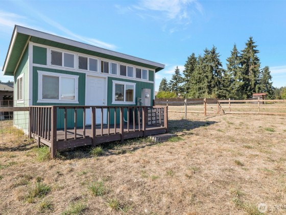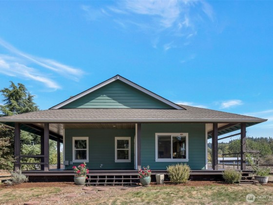 Beautiful One Owner, Modern Farm House! The wrap around covered deck, overlooks pastures and garden. Great room with cozy pellet freestanding stove, and ceiling fans. Kitchen with granite counters, wall oven, ceramic cooktop, and pantry. Owner suite with 2 closets, one being a walk in, and bathroom. Gorgeous LVP flooring throughout the main level. Upper level features bonus room. Plenty of room to roam on this 4.6 acre parcel, bring your farm animals! Chicken coop, open face cow barn, with ample storage for your farm equipment, and workshop. Lovely detached Studio with water and electricity (Rental Income, or Air BNB?). This fully fenced property could be ideal for homesteading. No HOA!