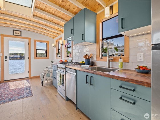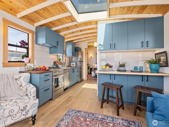 Welcome to Copper Penny, completely renovated in 2025, w/ stunning views down the canal to Lake Union, & quick access to downtown & Ballard. You'll love the exceptional craftsmanship & finish work in this copper-clad gem! Natural light floods the living area w/ hardwood flrs, new windows, large skylight, & a galley kitchen w/ full-sized stainless appliances, new cabinets plus a thoughtful built-in lighted eating bar. Next you'll find the marble-adorned bath w/ full soaking tub & heated floors. Huge bonus room is the new aluminum hull w/ automatic lighting for you to see the massive amount of storage or active space. Marina boasts free prkg, laundry/bath facilities, kayak stg/launch. Low moorage makes this a hard one to pass up! FOWR 861