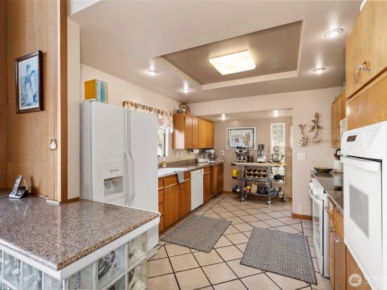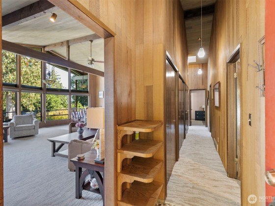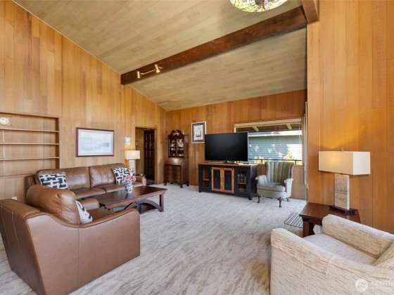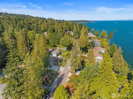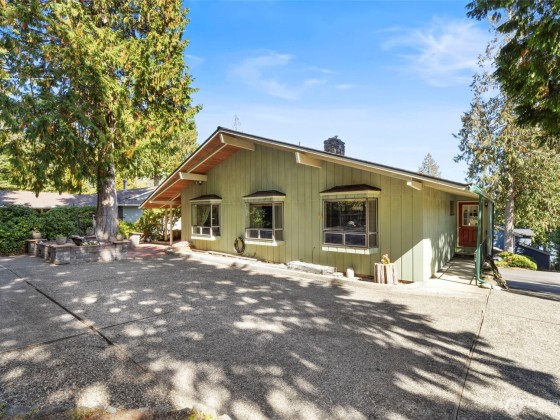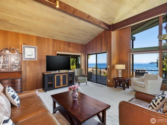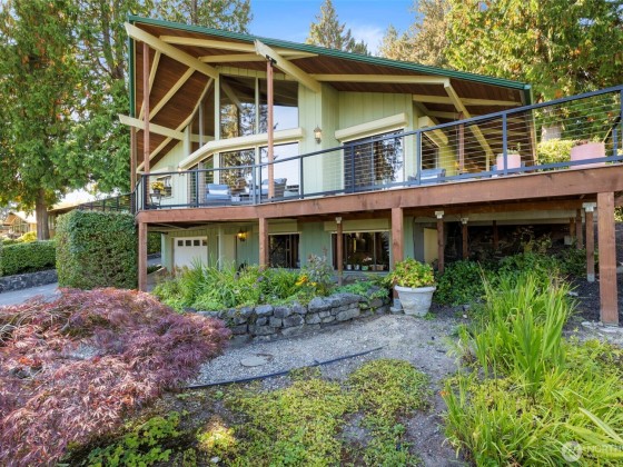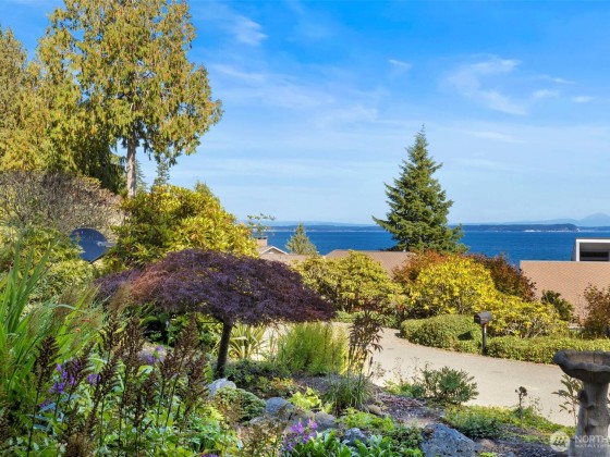 Morning noon or night, the magnificent views simply never get old! From the great-room inside to the covered porch, watch the sun rise over the Cascades and bathe the shipping lanes in morning and evening light. This 3 bed/2-3/4 bath home has been well loved and meticulously maintained for 30 years, with a new roof, paint, carpets composite deck and more. The single level living space is just a step from the parking area, and the spacious back yard.The fully finished lower level features a single car garage, large Rec room w/ bonus room. An exclusive location with exclusive amenities, including golf, swimming, marina and more, all situated in a lovely neighborhood with a meticulously maintained home and mature landscaping and Huge cedars!