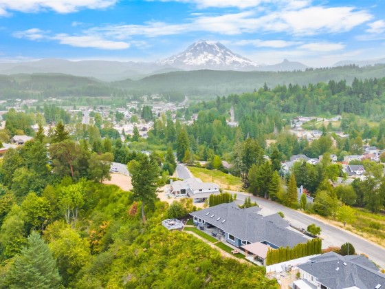 This gracious one level home captures panoramic views of Mt. Rainier & the picturesque valley. A truly breathtaking backdrop for everyday living. Designed for comfort & flexibility, the thoughtful floor plan features 2 primary suites & 3 additional bedrooms-versatile spaces perfect for a home office or gym. At the heart of the home is an inviting great room showcasing a spacious kitchen w/large island & bar area. Step outside to the covered patio, ideal for year-round relaxation & entertaining. Enjoy the brand new gazebo & hot tub as you soak in spectacular sunsets. Large 3 car garage plus shop. Exterior has been beautifully refreshed w/new roof, paint & updated landscaping. Walk to charming Eatonville amenities. Welcome to elevated living!