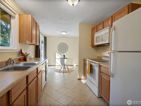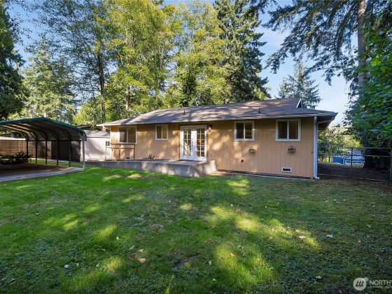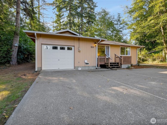 Welcome to this charming 2-Bedroom, 1-Full Bath rambler in the desirable Timberlakes community! Enjoy your morning coffee with peekaboo views of Little Timberlake! This home features a cozy kitchen, dining & living room area, creating a warm and inviting layout. All appliances stay, making it truly move-in ready. Outside the backyard is fenced & offers the perfect space for entertaining or possibly gardening, with room for RV parking. Community features offer private lake access, playgrounds and trails. Just minutes from the breathtaking Pickering Passage. PNW Privacy, and convenience all in one, this gem is ready to welcome its next owner!