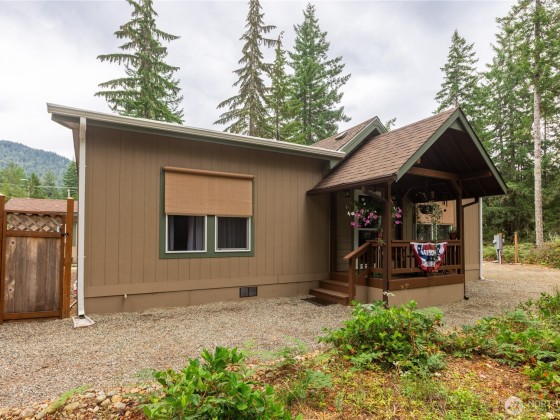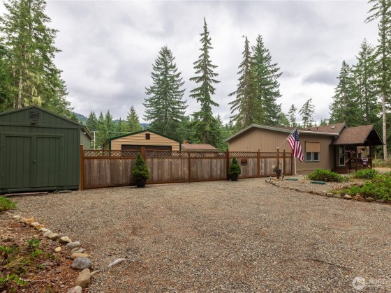 Welcome home! This beautiful 2019 Clayton Redwood II (1,064 sq.ft., 2 bed/2 bath) is fully furnished and move-in ready—just bring your clothes! Enjoy high ceilings, crown molding, coffered master & living room, and a built-in entertainment center with 65" TV & sound bar. Outdoors is a dream: 20x24 insulated garage (2023), 12x12 insulated workshop (2023), 10x20 shed, gazebo with hot tub, greenhouse, cedar fencing, and 3 RV hookups. Security system, covered porches, appliances, furniture, and even kitchenware are included. Perfect for comfortable living with amazing extras!