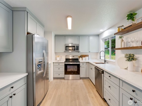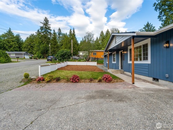 Welcome to this beautifully updated 1-story home near Lake Goodwin, offering the perfect blend of comfort and modern style. Inside, you’ll find new luxury vinyl plank flooring, fresh interior and exterior paint, and a stunning new kitchen with new cabinets, quartz counter top, under mount tub sink, and stainless steel appliances. With 3 bedrooms plus an office or 4th bedroom and 3 baths, there's space for everyone. All bathrooms have been thoughtfully renovated with today's finishes. Large Entertainment wrap around deck is perfect. Situated on a level lot with ample room for RV or boat parking, this home combines convenience & lifestyle. Enjoy peaceful living just minutes from the lake, with all the upgrades already done—move in and enjoy!