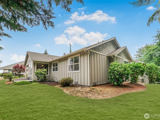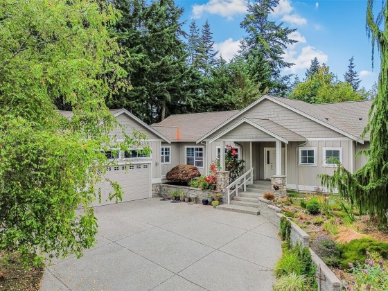 Perched on Camano Island, this single-level 3-bedroom, 2.5-bath gem offers breathtaking Skagit Bay views. Natural light floods the open living area, seamlessly connecting to a spacious kitchen ideal for casual gatherings or grand entertaining. Retreat to the primary suite, a private oasis with en-suite bath. Recent upgrades include fresh paint and a new water heater—just move in. Step onto the covered back deck to savor morning coffee or unwind in afternoon shade amidst lush, manicured landscaping. A high-ceilinged 3-car garage provides ample storage and hobby space. Experience peaceful island living with easy access to beaches, parks, and ferry connections. Close to dining, shopping, and schools. Your Camano Island refuge awaits!