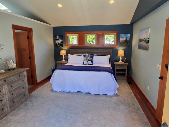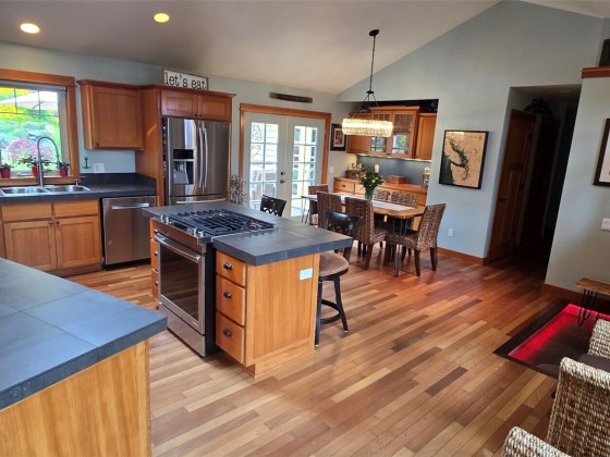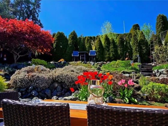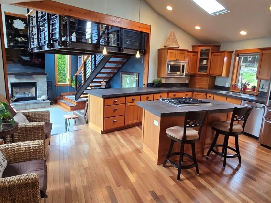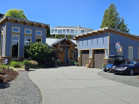 One of Birch Bay Village's finest homes with exceptional craftsmanship and design. No details were left out in this stunning and contemporary style 3 bedroom 2 bath masterpiece. Custom appealing finishes include Brazilian cherry hardwood, porcelain and slate flooring, clear Douglas Fir cabinetry and interior trim, and high vaulted ceilings which lead to a suspended office that overlooks a large wide open great room. This home has been tastefully updated including the primary bathroom...a must see! Well maintained & beautifully landscaped backyard with amazing waterfall, hottub and Baker to Bay views from the upper landing. Enjoy all that Birch Bay has to offer including golf, beaches, new marina, pool, pickleball and 24 hour security gate.