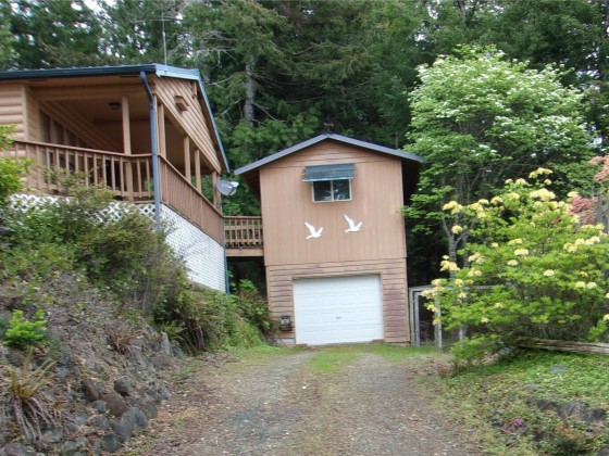 2 bedroom home on 2.5 acres with filtered view of Hood Canal. Property is wooded, clearing would result in better view. Nice large shop building for parking or projects and additional small garage with office space above. Estate sale, will need final court approval.