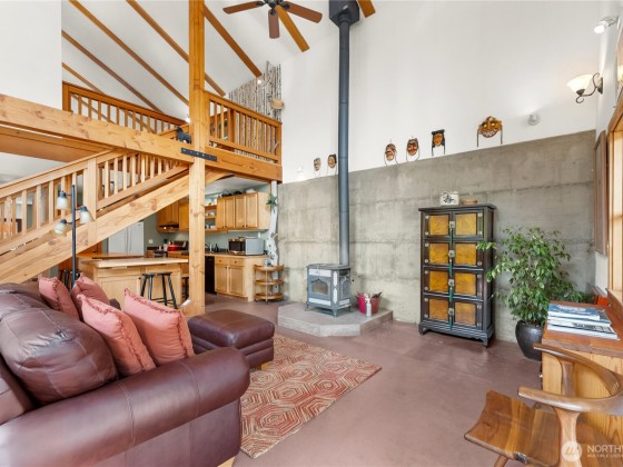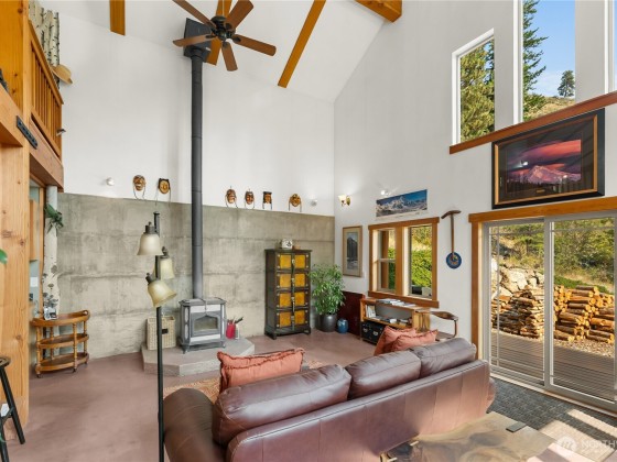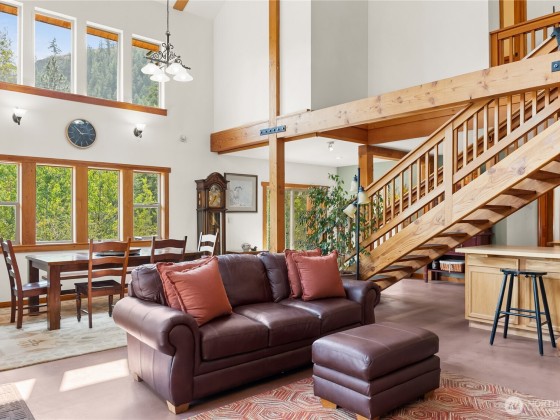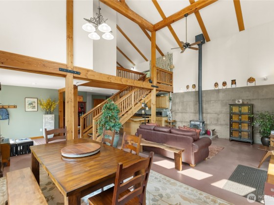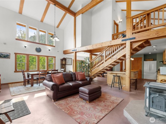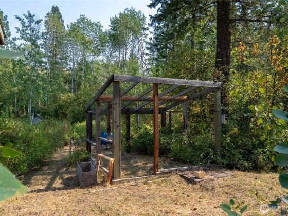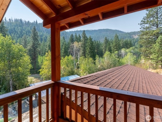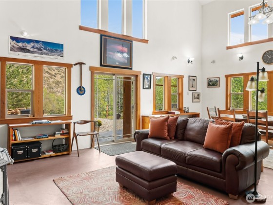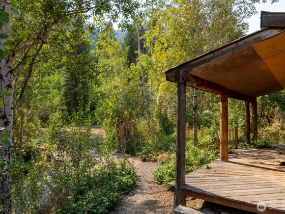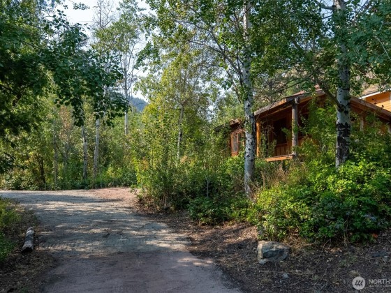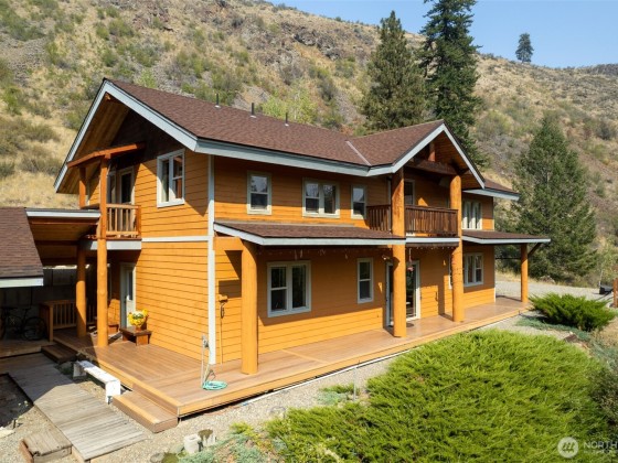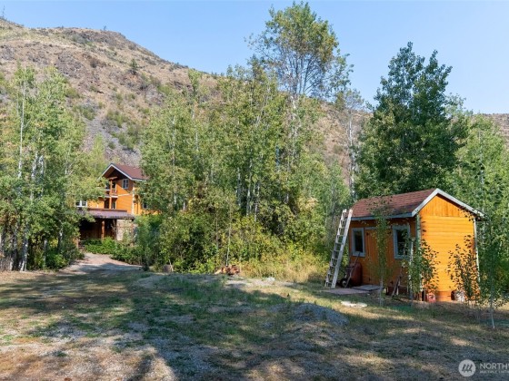 SECLUDED 20-ACRE RETREAT – TWISP RIVERDiscover your private escape in Alder Creek—20 wooded acres just 3 miles from Twisp. 2-bedroom, 2-bath timberframe home offers views of McClure Mountain from landscaped patios & decks, w/ abundant privacy & direct access to state land. The great room features a wall of windows that frame mountain vistas & flood the space w/ natural light. Main level includes a comfortable bedroom & chef's kitchen, while the upper level hosts the primary suite w/ bath, a yoga room, & loft space. 2-car garage w/shop attached by breezeway, storage shed, & root cellar. A tucked-away guest house, ready for updates, provides extra space for friends. Enjoy wildlife watching, grilling on the patio, & exploring. Don't use GPS.