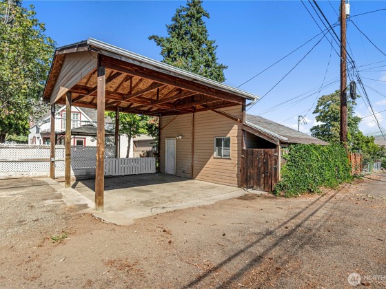 Discover this attractive bungalow, great lines and excellent street appeal. The interior and exterior trim have been freshly painted, offering a clean slate. The main floor has a bedroom with adjacent updated bathroom and step in shower. There is a bright, oversized utility/hobby space. Unlock the potential of the upper level and unfinished basement. Outside, a private backyard complements the great covered off-street parking from the alley and a front driveway. A detached shop, previously an ADU, is adjacent to the covered carport and small RV parking. This property is an estate sale.