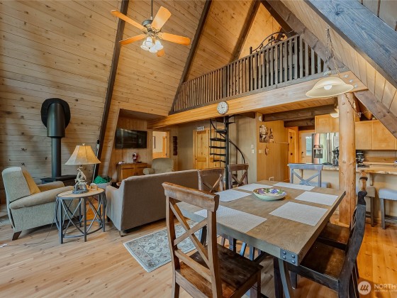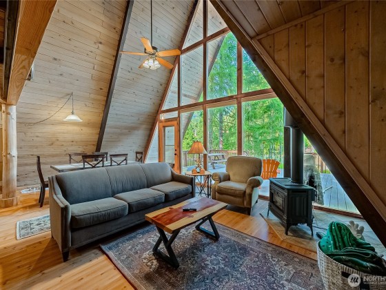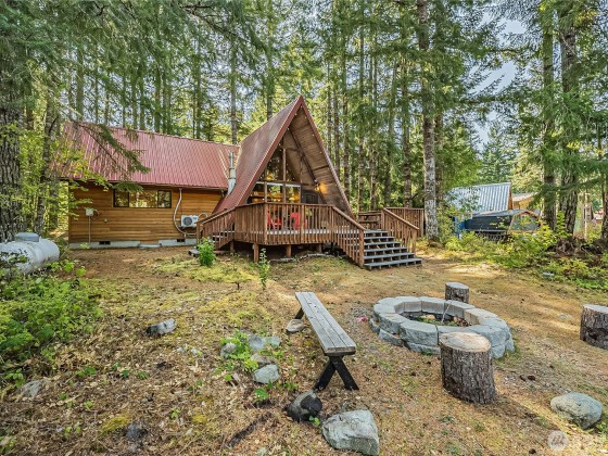 Escape to the mountains with this updated classic A-frame cabin in Packwood’s Timberline community. Featuring an open living space, two bedrooms on the main floor, and a spacious sleeping loft, it’s perfect for hosting guests or cozy getaways. Vaulted ceilings and warm wood finishes create timeless mountain charm. Expansive outdoor spaces on 2 lots, with 2 decks, a hot tub and 2 sheds. Timberline offers athletic courts, swimming pools, a clubhouse, and river access for year-round fun. Just minutes from downtown Packwood and 20 miles to White Pass Ski Area, with easy access to Mt. Rainier National Park. Turnkey with existing short-term rental use and huge potential, this property blends adventure and relaxation in the heart of the Cascades.