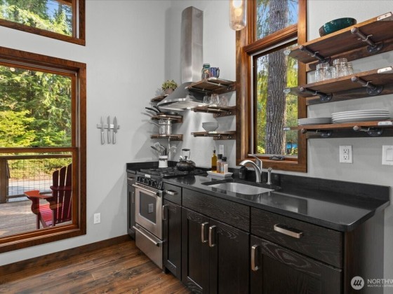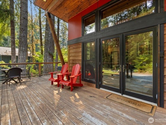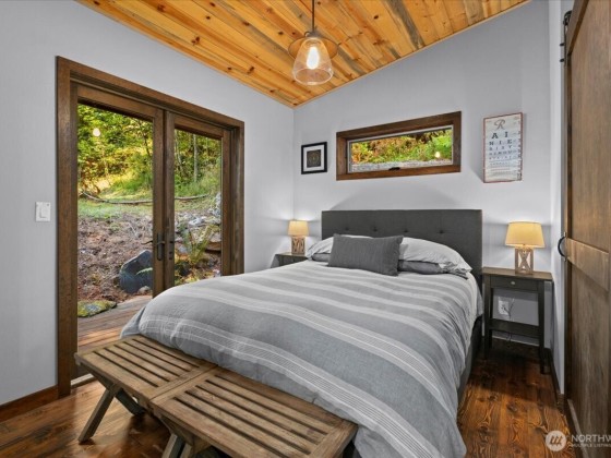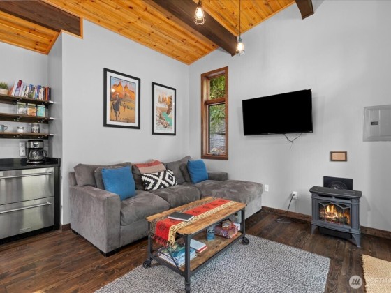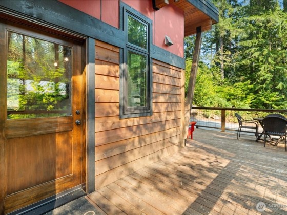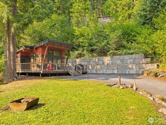Modern mountain cabin just 5 minutes from Nisqually entrance to Mount Rainier National Park. Built w/quality & attention to detail, this retreat features stunning Douglas Fir flooring, tongue-and-groove wood ceilings, & beautiful wood windows that frame the forest setting. A spacious wrap-around deck offers a perfect place to relax. The kitchen & living spaces are warm & inviting, highlighted by a propane fireplace. The cabin also offers a durable metal roof, tile shower, & updated septic system w/new pump, floats, & alarm in 2025. Thoughtfully designed & well-maintained, an ideal getaway or investment property in the heart of Ashford. Active, profitable, short-term rental sold fully furnished for instant income & enjoyment!